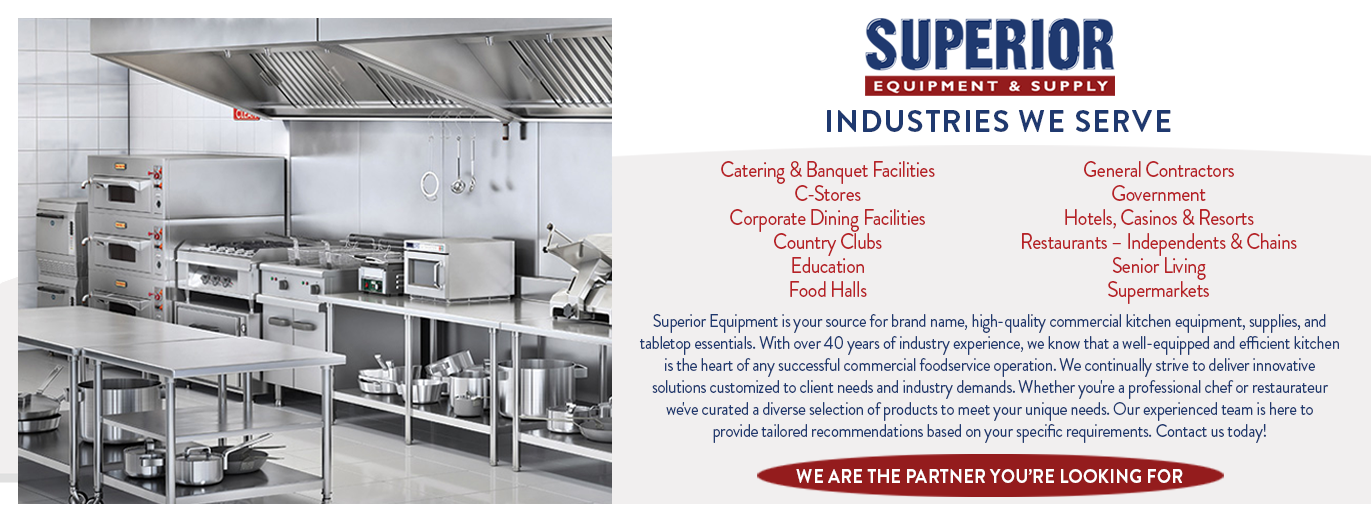 Superior provides profit-driven solutions, personalized services and first-rate foodservice equipment and supply products to help achieve an unrivaled guest experience. Built by over 40 years of experience, we offer innovative and cost saving ideas that bring your culinary vision to life.