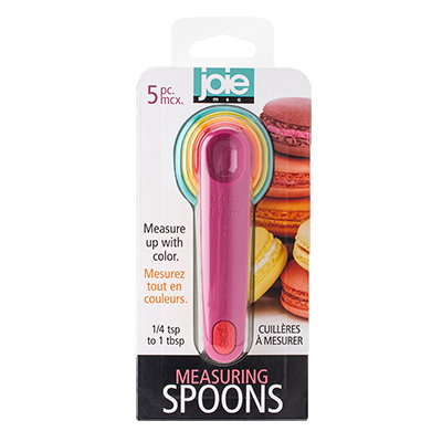 HIC Joie Measuring Spoon Set 5-Piece 1/4 Teaspoon-1 Tablespoon Pink Yellow Red Blue Green BPA Free Plastic