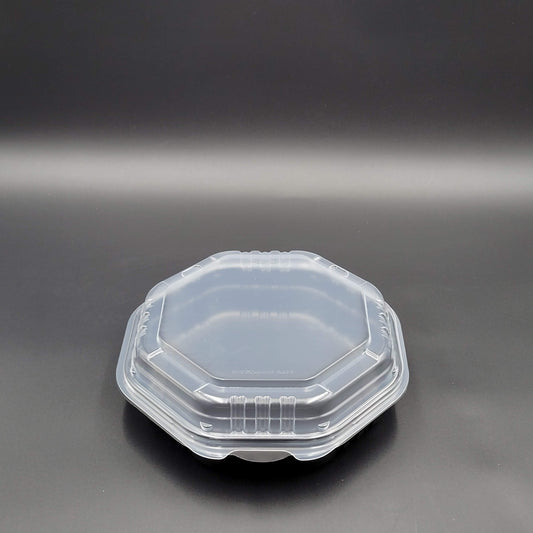 Solo Deep Octagon Hinged Container Black Base & Clear Lid 9" 864612-PS94 - 100/Case