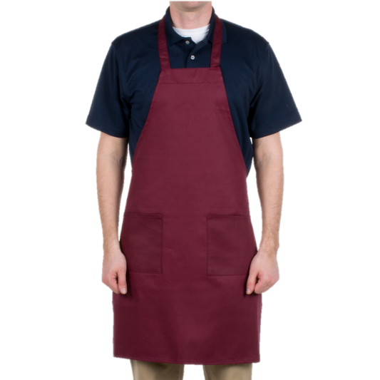 Bib Apron With (2) Pockets Burgundy 65/35 Poly-Cotton Blend Full-Length 33"L X 26"W