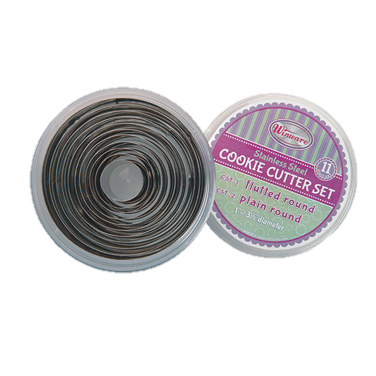 Cookie Cutter Set Round & Plain Stainless Steel 1”- 3-1/2” Diameter - 11 Pieces/Set