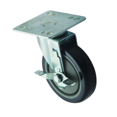 Universal Caster Set 5" Diameter Wheel with 4" x 4" Plate & Brake - 2 Casters/Set