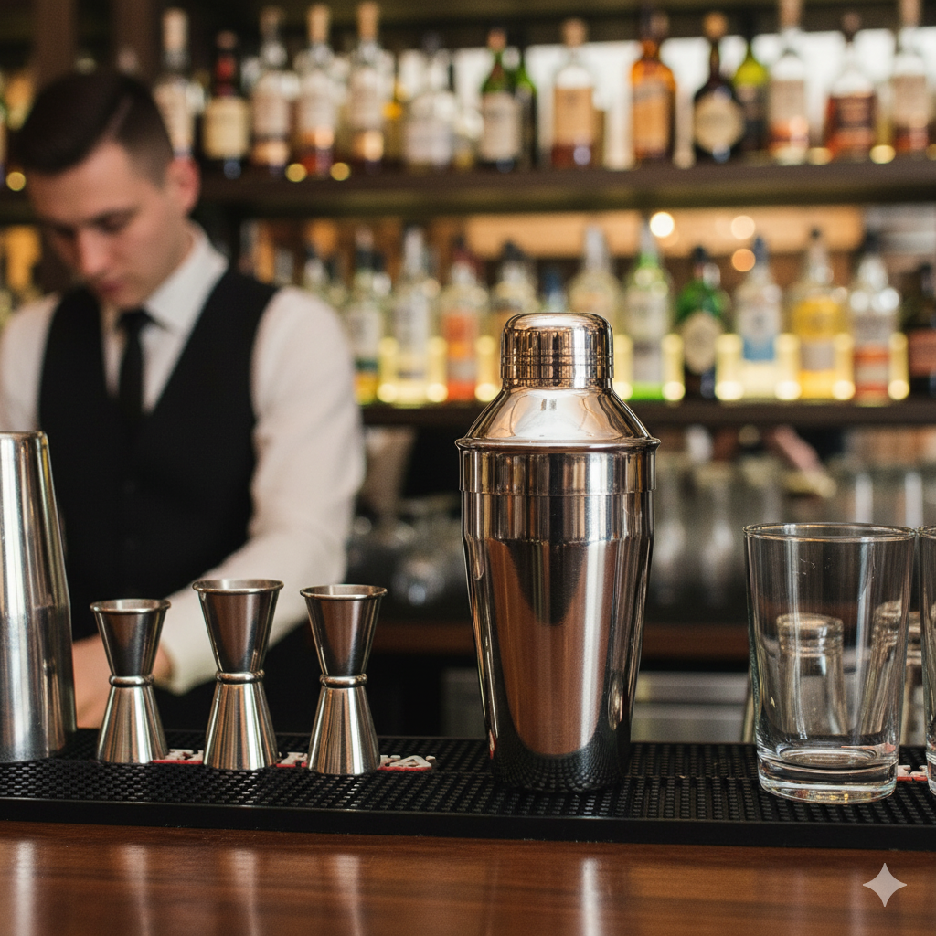 Description: Classic Bar Shaker Set, 10 oz., 3-piece, includes: cap, strainer, & cup, stainless steel