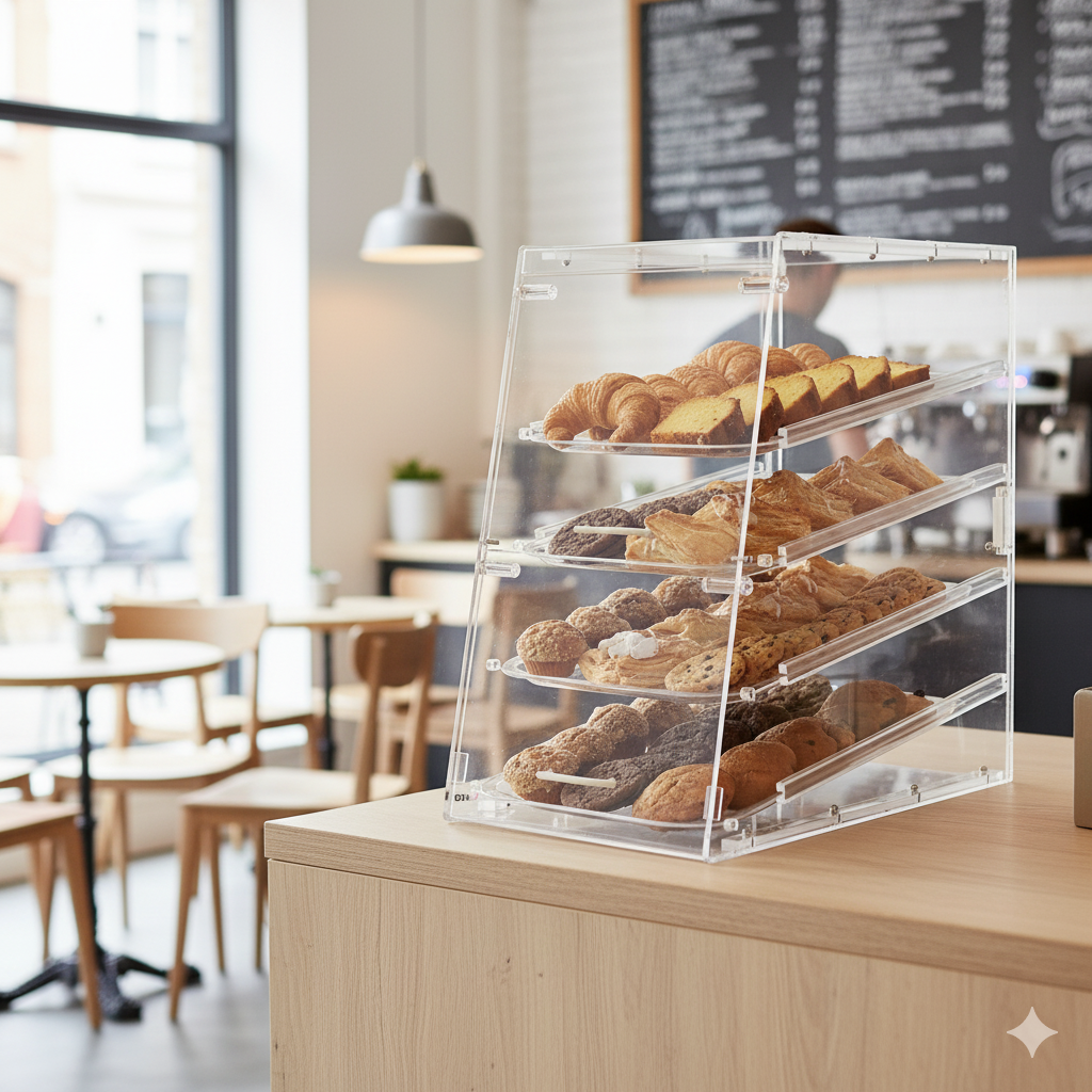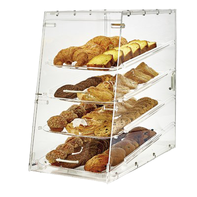 Description: Display case, 14" x 24" x 24"H, counter-top, front self-service & rear door, includes: (4) 12" x 18" trays, acrylic, clear
