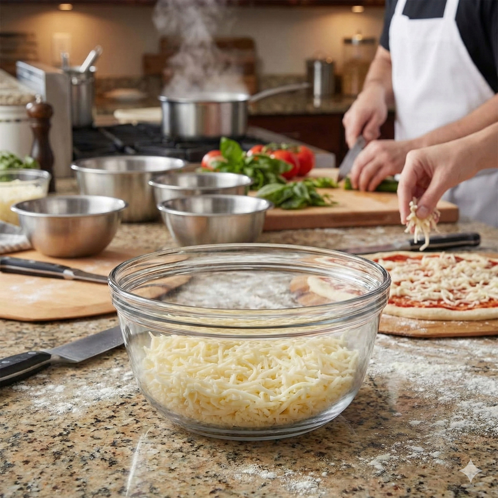 Description: Mixing Bowl, 2.5 Qt., 7-1/2" dia. x 3-5/8"H, glass, clear