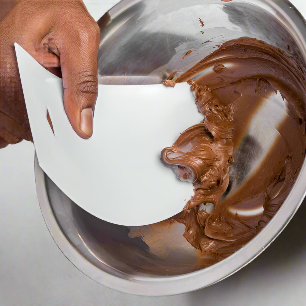 Description: Ateco 1320 7 1/2" x 4 3/4" Large Plastic Bowl Scraper,White,Solid,1-Piece