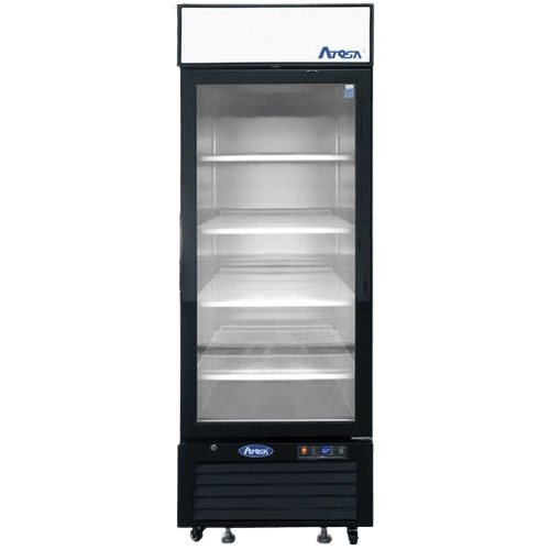 Description: Freezer Merchandiser, one-section, 27"W x 31-1/2"D x 81-1/5"H, bottom-mount self-contained refrigeration, 19.4 cu. ft., (1) self-closing hinged glass doors with locks, digital temperature control, -8° to 0°F temperature range, (4) adjustable shelves, LED interior lighting, automatic evaporation, electric defrost, stainless steel interior, black exterior, R290 Hydrocarbon refrigerant, 1/2 HP, 115v/60/1-ph, 2.1 amps, cord with NEMA 5-15P, cETLus, ETL-Sanitation
