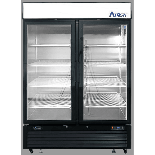 Description: Freezer Merchandiser, two-section, 54-2/5"W x 31-1/2"D x 81-1/5"H, bottom-mount self-contained refrigeration, 43.8 cu. ft., (2) self-closing hinged glass doors with locks, digital temperature control, -8° to 0°F temperature range, (8) adjustable shelves, LED interior lighting, automatic evaporation, electric defrost, stainless steel interior, black exterior, R290 Hydrocarbon refrigerant, 3/4 HP, 115v/60/1-ph, 8.6 amps, cord with NEMA 5-15P, cETLus, ETL-Sanitation, ENERGY STAR®