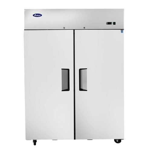 Description: Atosa Freezer, reach-in, two-section, 51-7/10"W x 31-7/10"D x 81-3/10"H, top mount self-contained refrigeration, 43.16 cu ft., (2) locking hinged solid doors, digital temperature control, -8° to 0°F temperature range, (6) adjustable shelves, interior LED lighting, automatic evaporation, electric defrost, stainless steel interior & exterior, galvanized steel back, 4" casters, R290 Hydrocarbon refrigerant, 3/4 HP, 115v/60/1-ph, 8.6 amps, cord with NEMA 5-15P, cETLus, ETL-Sanitation, ENERGY STAR®