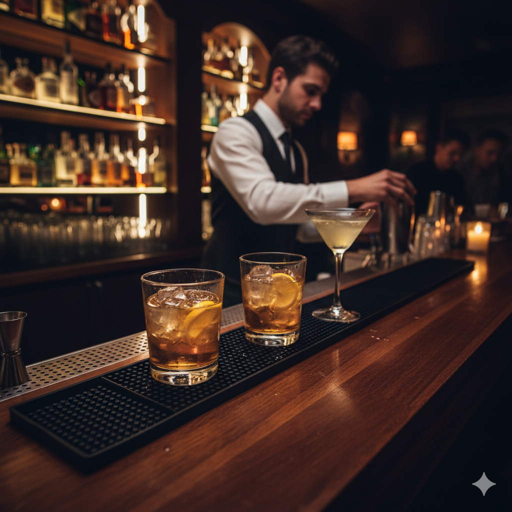 Description: Bar Mat, 27" x 3-1/4", rubber, black, NSF