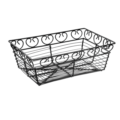 Description: Bread/Fruit Basket, 9" x 5-7/8" x 3"H, rectangular, wire construction, black