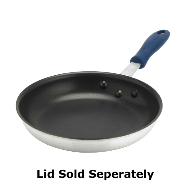 Description: Thermalloy® Fry Pan, 7" dia. x 1-3/10", without cover, handle with off-set rivets, ergonomic removable blue silicone heat resistant sleeve (to 572°F), operates with gas/electric/ceramic/halogen, standard weight, 8 gauge, aluminum, Eclipse® non-stick coating, NSF