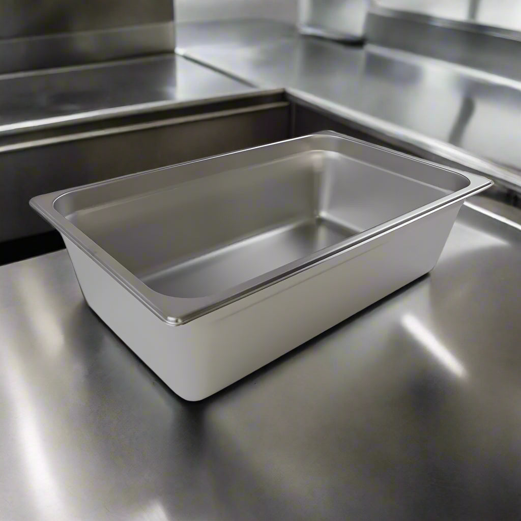Description: Steam Table Pan, full size, 21.2 qt., 20-3/4"L x 12-3/4"W x 6" deep, solid, reinforced edge & corners, anti-jam, 24 gauge, 304 stainless steel, NSF