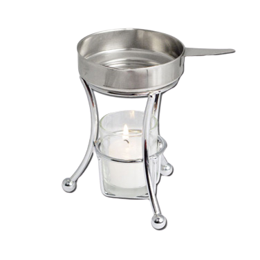 Description: Butter Warmer Set, 4.2 oz., 3-1/2", 4-piece, includes: stand, butter pan, candle holder and candle, stainless steel with chrome plating