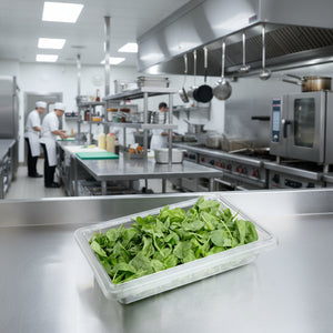 Description: Food Storage Container, 12" x 18" x 3-1/2", 1.75 gallon capacity, resist stains, dishwasher safe, polyethylene, natural white, NSF