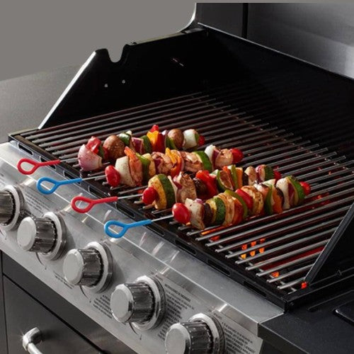 Description: Mr. Bar-B-Q 4 Piece Heavy Duty Skewers, Ideal for Kabobs, Meats & Marshmallows, Heavy Duty with Nylon Stay-Cool Handles, Easy to Clean