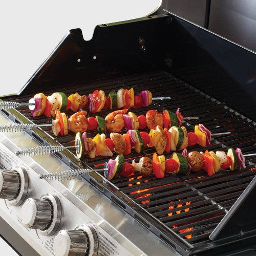 Description: Mr. Bar-B-Q Spiral Skewers, Ideal for Kabobs, Meat and Vegetables, Easy to Grip Cool Touch Handles Protect Hands from Heat, Flat Body Holds Food Securely in Place, Push Bars for Easy Food Removal, Durable Metal Construction, 17 in Long (43.18 cm)