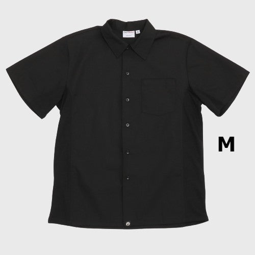 Description: Cook Shirt, short sleeves, Cool Vent™ panels under arms and down sides, matching buttons, left chest patch pocket, classic fit, 65/35 poly/cotton, black, medium