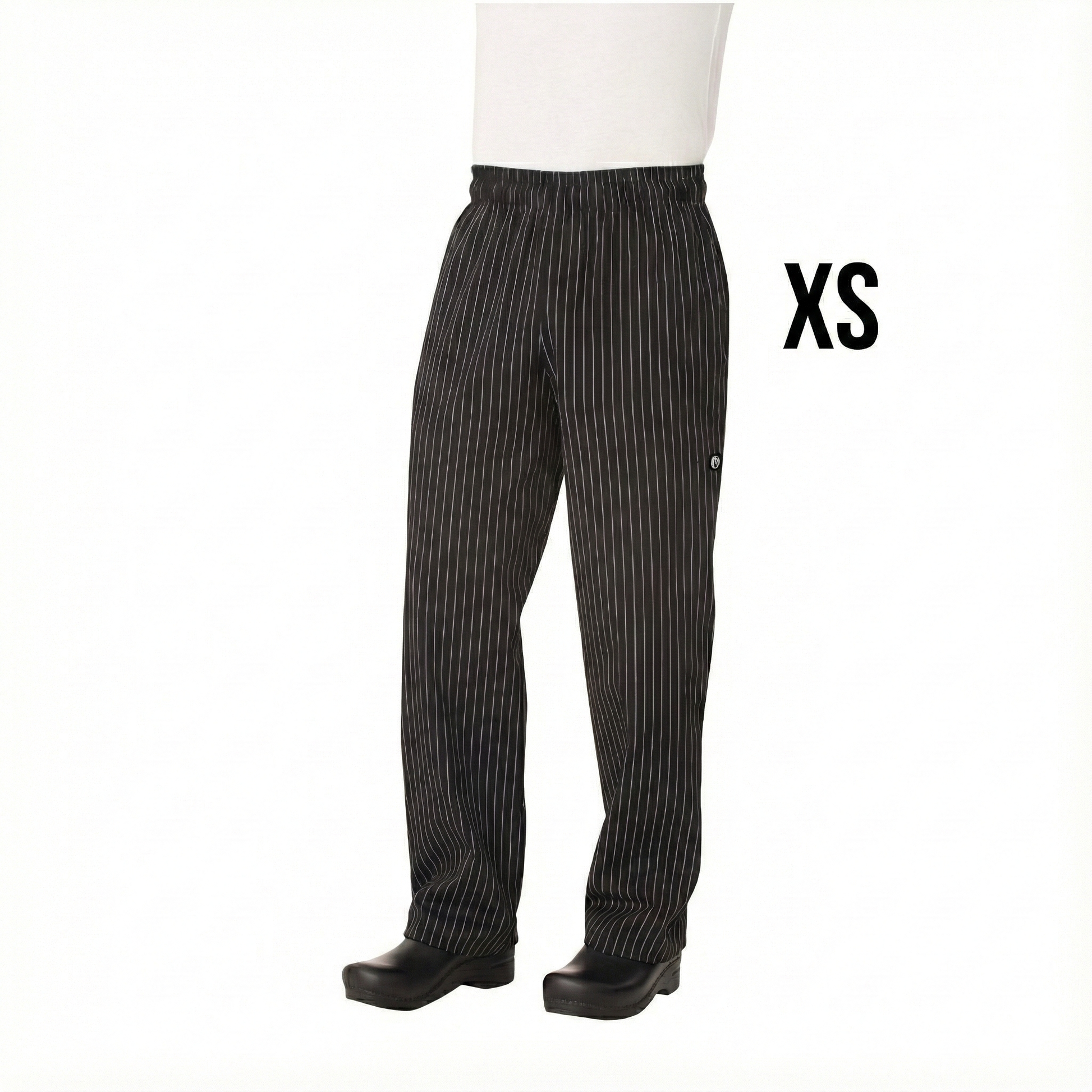 Chef Works Designer Baggy Pants Black w/White Stripes XS PINB000XS