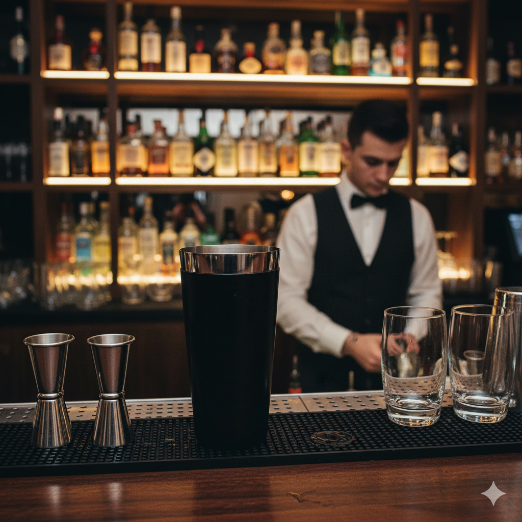 Description: Bar Shaker, 28 oz., shaker only, stainless steel with plastic coating, black