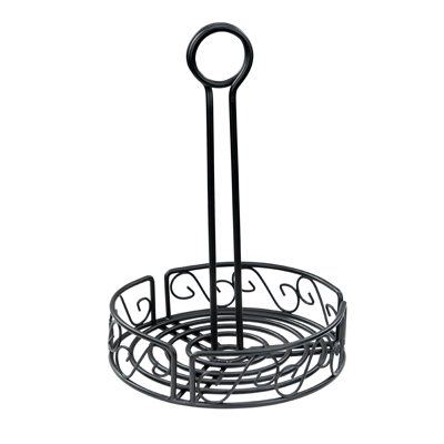 Description: Condiment Caddy, 7-1/2" dia. x 9"H, round, wire construction, black