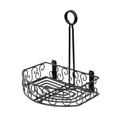 Description: Condiment Caddy, 8-1/4" x 6-1/4" x 9"H, straight back, wire construction, flat black