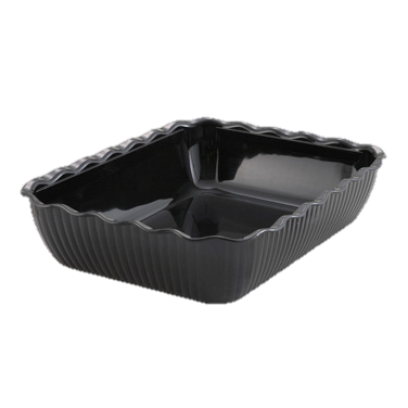Description: Deli Crock, 13" x 10" x 3", rectangular, fluted, BPA free, SAN, black