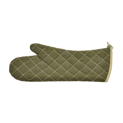 Description: Oven Mitt, 17", flame resistant up to 400°F (205°C), cotton, green