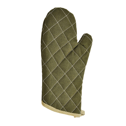 Description: Oven Mitt, 13", flame resistant up to 400°F (205°C), cotton, green