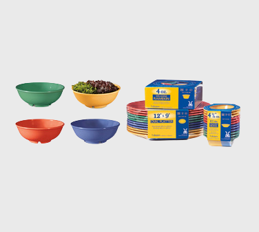 Description: Diamond Mardi Gras™ Bowl, 24 oz. (1.1 qt. rim full), 7-1/2" dia. x 2-3/4"H, break-resistant, dishwasher safe, BPA free, melamine, mix pack of 4 Mardi Gras™ colors (tropical yellow, rio orange, peacock blue & rainforest green), NSF (special packaging)