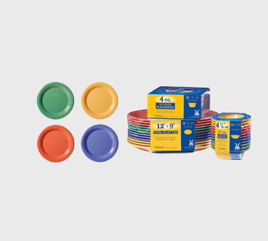 Description: Diamond Mardi Gras™ Plate, 7-1/4" dia., round, narrow rim, break-resistant, dishwasher safe, BPA free, melamine, mix pack of 4 Mardi Gras™ colors (tropical yellow, rio orange, peacock blue & rainforest green), NSF (special packaging)