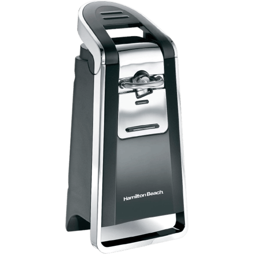 Description: Hamilton Beach Smooth Touch Electric Automatic Can Opener with Easy Push Down Lever, Eliminates Sharp Edges, Opens All Standard-Size and Pop-Top Cans, Extra Tall, Black and Chrome