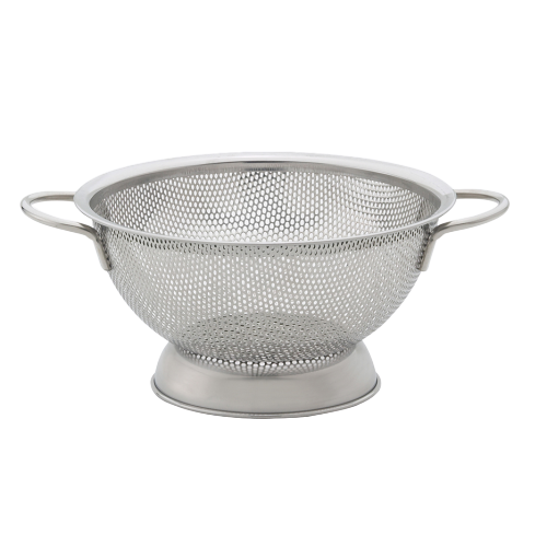 Description: HIC Colander, 7.5", 1 qt., perforated, with double handle, 18/8 stainless steel
