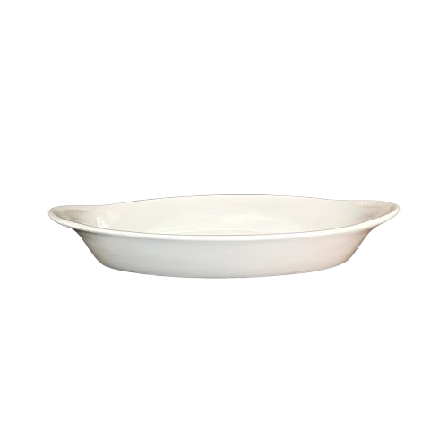 Description: Accessories Welsh Rarebit, 12 oz., 10"L x 5-3/8"W x 1-3/8"H, oval, dishwasher, oven and microwave safe, porcelain, white (sold by case)