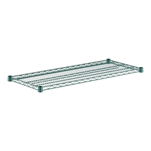 Description: Shelf, wire, 42"W x 18"D, (3) trusses, green epoxy coating, NSF (shelf clips included)