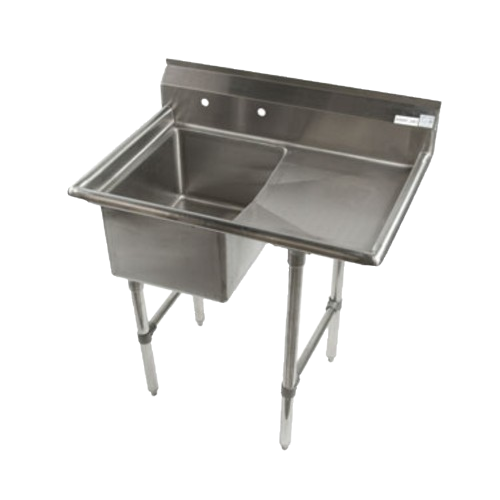 Description: Economy Sink, one compartment, 36-1/2"W x 25-1/2"D X 41"H, 18/304 stainless steel construction, 16"W x 20" front-to-back x 11" deep compartment, 9"H backsplash, 18" right drainboard, 8" O.C splash mount faucet holes, stainless steel gussets, legs, crossbracing, & adjustable bullet feet, ETL