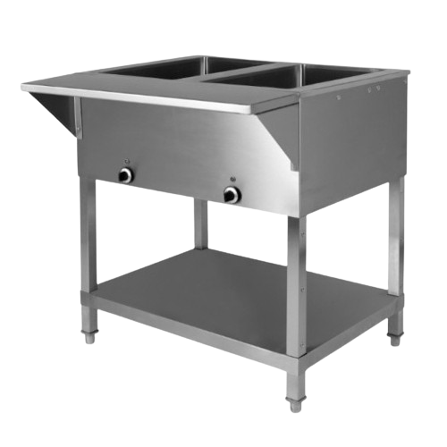Description: Sealed Well Electric Table, stationary, 3-pan, 47-1/2"W x 30-5/8"D, (3) 12" x 20" hot wells, individual thermostatic controls, 18 gauge stainless steel undershelf, fiber glass insulated, manifold drain assembly, 1920 watts, cord with NEMA 5-20P, 120v/60/1-ph, 16.0 amps, ETL