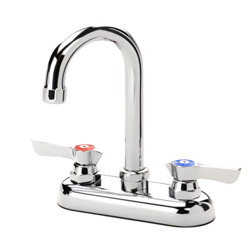 Description: Krowne Silver Series Faucet, deck mount, 4" centers, 3-1/2" gooseneck spout, quarter-turn ceramic cartridge valve, includes mounting kit, chrome finish, low lead compliant, NSF
