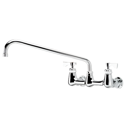 Description: Krowne Royal Series Faucet, splash-mounted, 8" centers, 14" swing spout, quarter-turn ceramic cartridge valve, low lead compliant, NSF, Includes internal check valves to prevent backflow & cross contamination