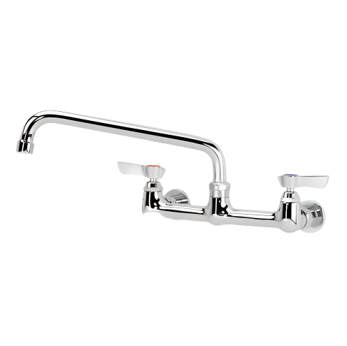 Description: Krowne Silver Series Faucet, splash-mounted, 8" centers, 10" swing spout, quarter-turn ceramic cartridge valve, low lead compliant