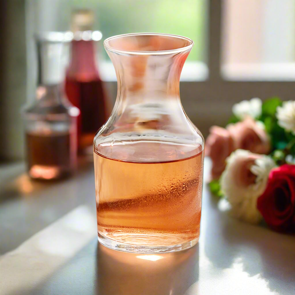 Description: Carafe, 8-1/2 oz. rim full (6 oz. to the neck), Safedge® rim guarantee, glass (H 4-7/8"; T 2-1/4"; B 2-1/2"; D 2-3/4") (36 each per case)