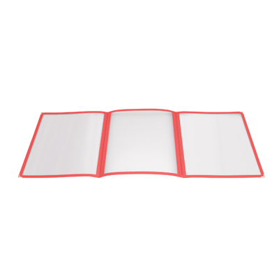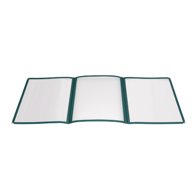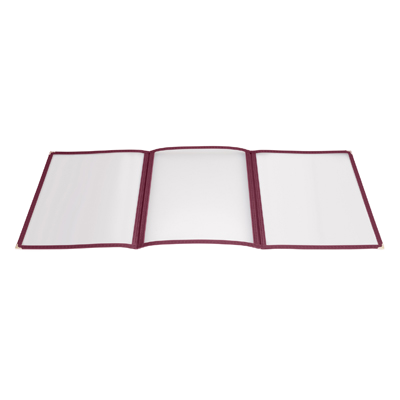 Description: Menu Cover, triple fold, overall 9-1/2" x 12-1/8", holds 8-1/2" x 11" paper, double stitched edging, plastic, black