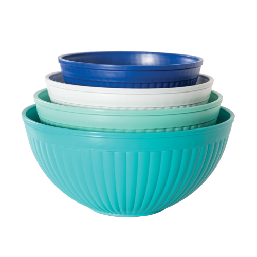 Description: 4-Piece Prep & Serve Mixing Bowl Set, BPA-free and Melamine Free Plastic, High-Heat Plastic, Includes 2-qt, 3.5- qt, 5-qt, 7-qt bowls