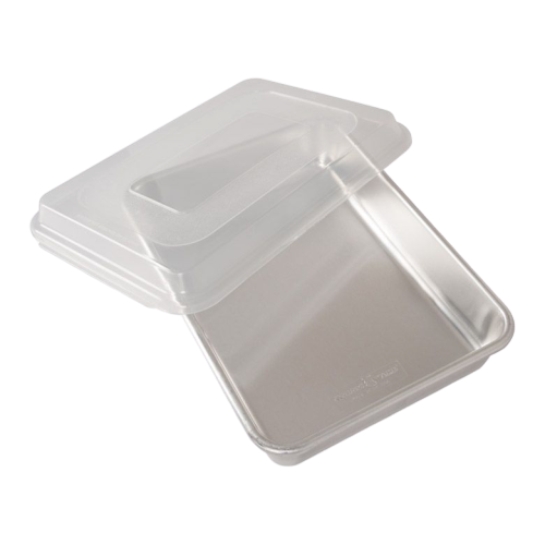 Description: 9" x 13" Rectangular Cake Pan with Lid, Aluminum, BPA-free Plastic Cover,