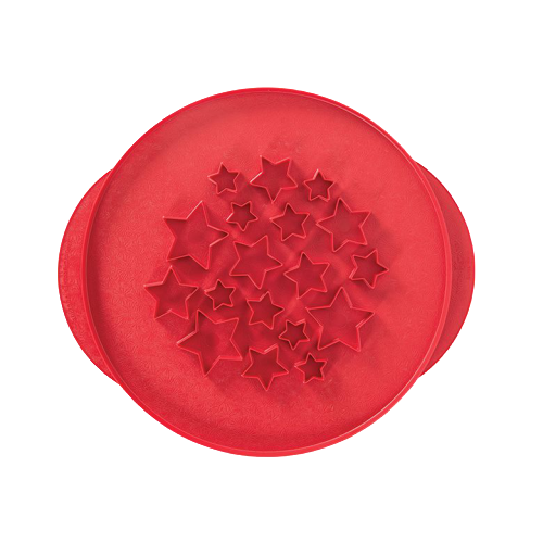 Description: Stars and Cherries Pie Top Cutter, BPA-free and Melamine Free Plastic, 12" Pies, L: 14.50 in. W: 14.25 in. H: 0.88 in.