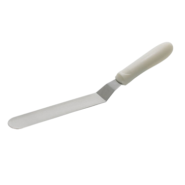 Description: Offset Spatula, 6-1/2" x 1-5/16" (not including offset) blade, dishwasher safe, slip-resistant, polypropylene handle, stainless steel, satin finish, white, NSF