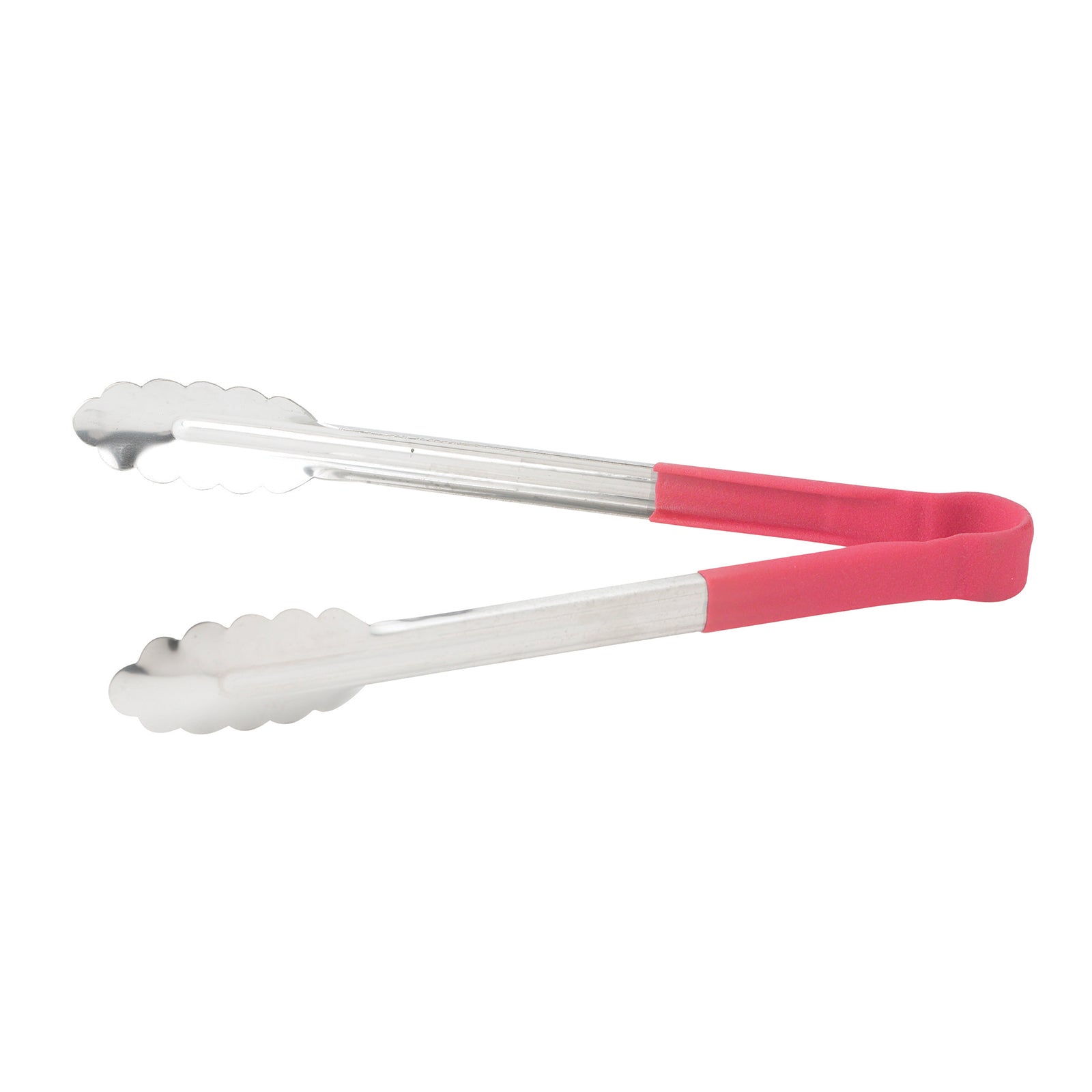 Winco Utility Tongs Stainless Steel with Red Polypropylene Handle 12" UTPH-12R