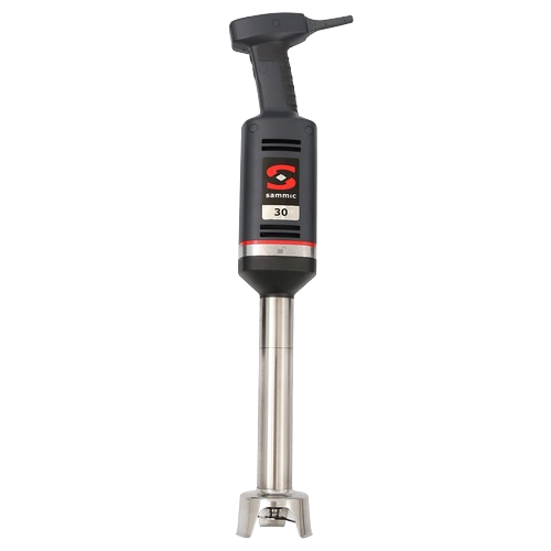 Description: (3030789V) Immersion Stick Blender, handheld, wall mount, 30 liters (32 qt.) capacity, (3030653) 12"L stainless steel detachable arm with 3-11/25" dia. bell, y-blade, Ergo-design, Bi-Mat-Grip with anti-slip material, continuous run option, All-In-One tempered steel tri-blade cutting system, LED warning light in two colors and safety power indication light, (3030783) variable speed motor block 1,500-12,000 rpm, .54 HP, 400 watts, 120v/50/60/1-ph, NEMA 5-15P, NSF, CE, ETL, cETLus