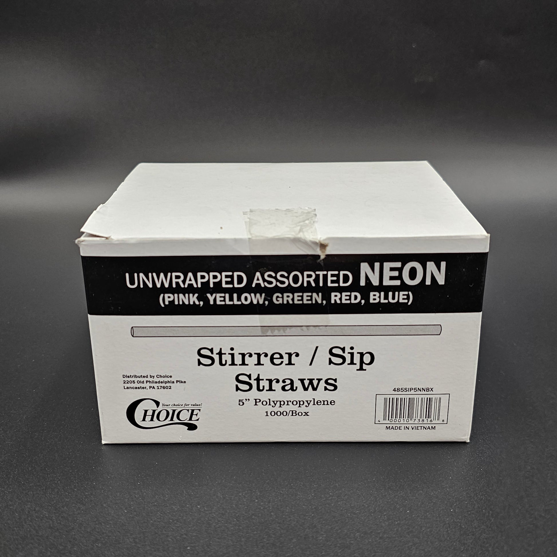 Description: Beverage Assorted Neon Stirrer/Sip Straw Unwrapped 5"