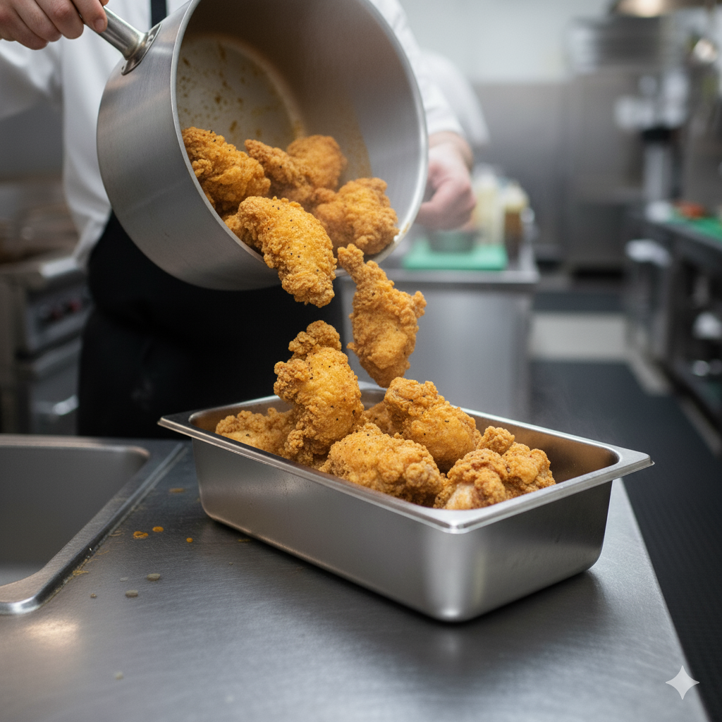 Description: Spillage Pan, full size, 6" deep, flat edge, stainless steel, NSF